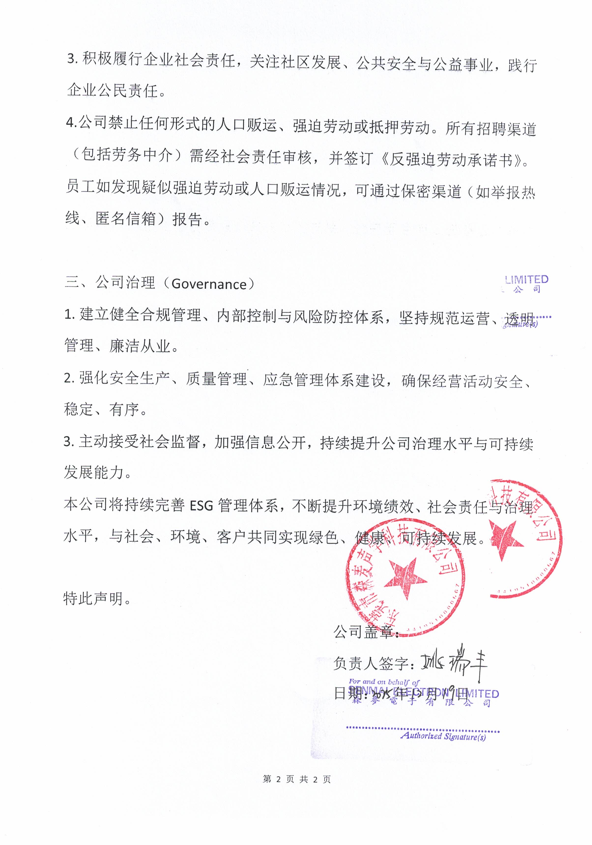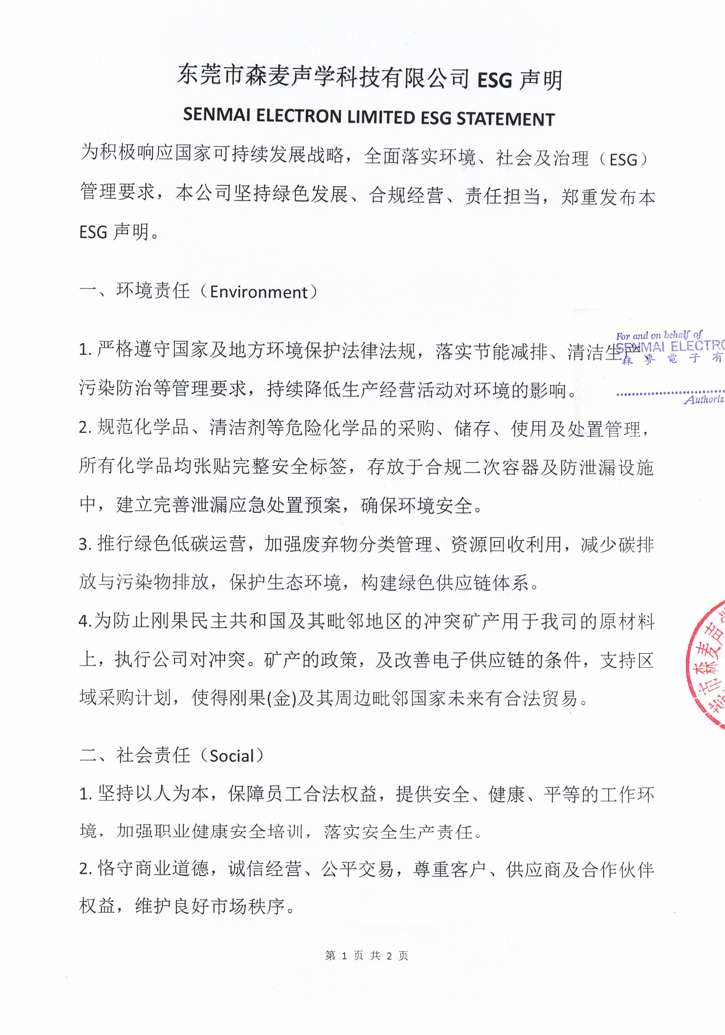 SENMAI ESG statement